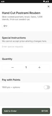 - Reward Tracking: Earn points with each purchase and easily redeem them for rewards through the app. Monitor your points balance and track your progress towards your next complimentary meal or reward.