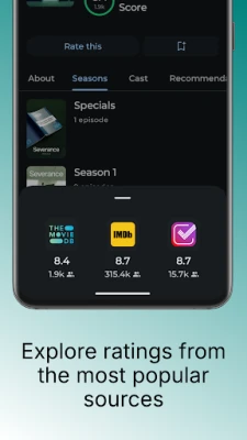 ScenePeek also aggregates ratings from trusted sources like IMDb and Trakt, giving you a holistic view of popular entertainment content.